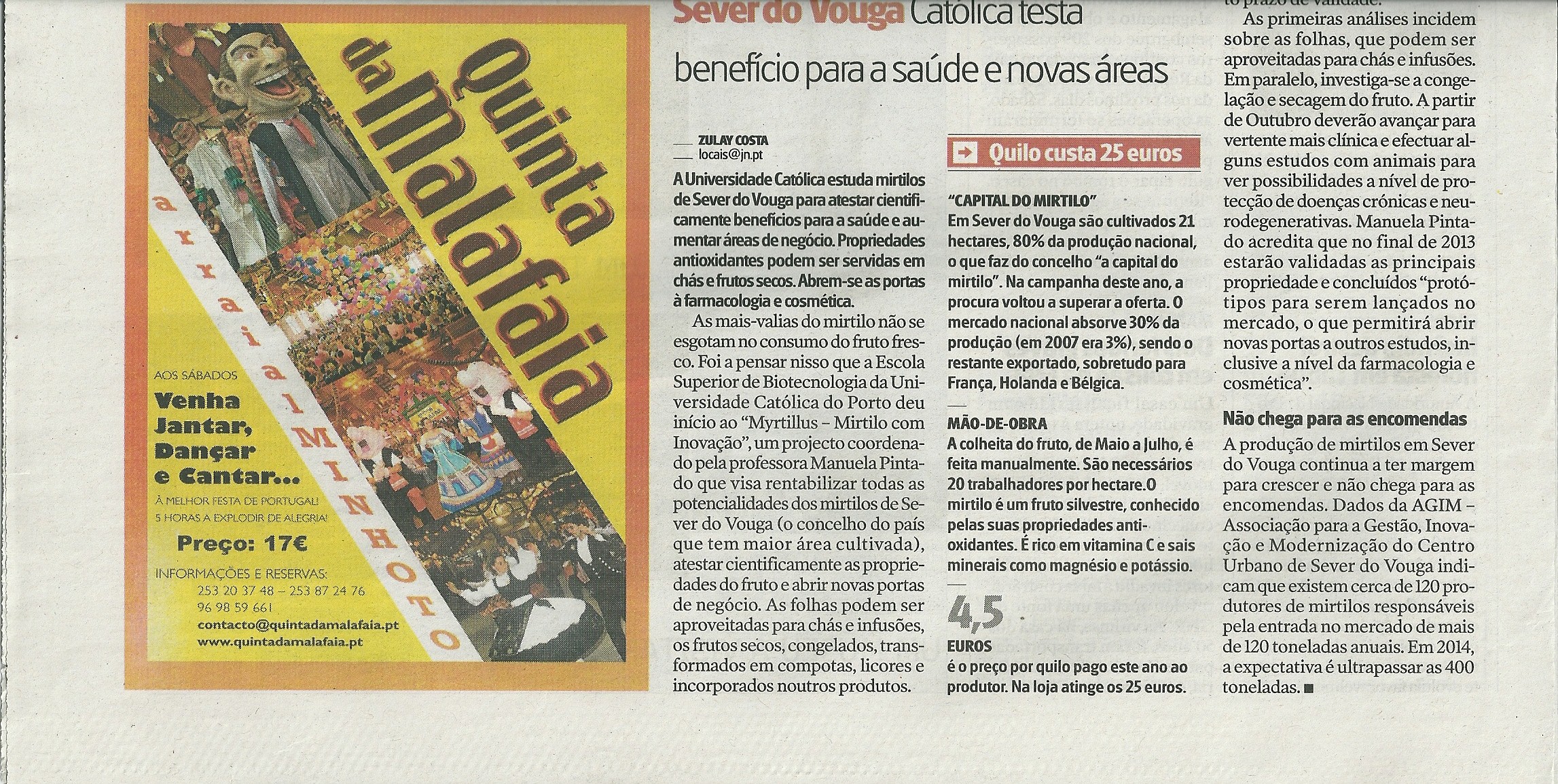 Como nasceu o Projeto MyrtillusDevido às características intrínsecas do mirtilo, conhecido pela sua riqueza em vitamina C, sais minerais como magnésio, potássio, cálcio, fósforo, ferro, manganésio, e outros componentes tais como taninos, pectinas e antocianinas, responsáveis pelas suas propriedades antioxidantes, com benefícios para a saúde, e ainda devido à expansão desta cultura, aliado à valorização do fruto e dos seus subprodutos, e numa perspectiva de criação de oportunidades de rentabilização da Mirtilusa, contemplando a valorização da fruta, fresca e processada, com base na sua caracterização biológica (fundamentada e validada) e a conversão em produtos de elevado valor acrescentado, com a introdução no mercado de uma nova linha de produtos de Mirtilo, com propriedades funcionais validadas, com relevância das suas propriedades antioxidantes, levou à necessidade da formação de um consórcio que deu origem ao Projecto Myrtillus, projecto esse que vai trazer mais-valias num futuro próximo.